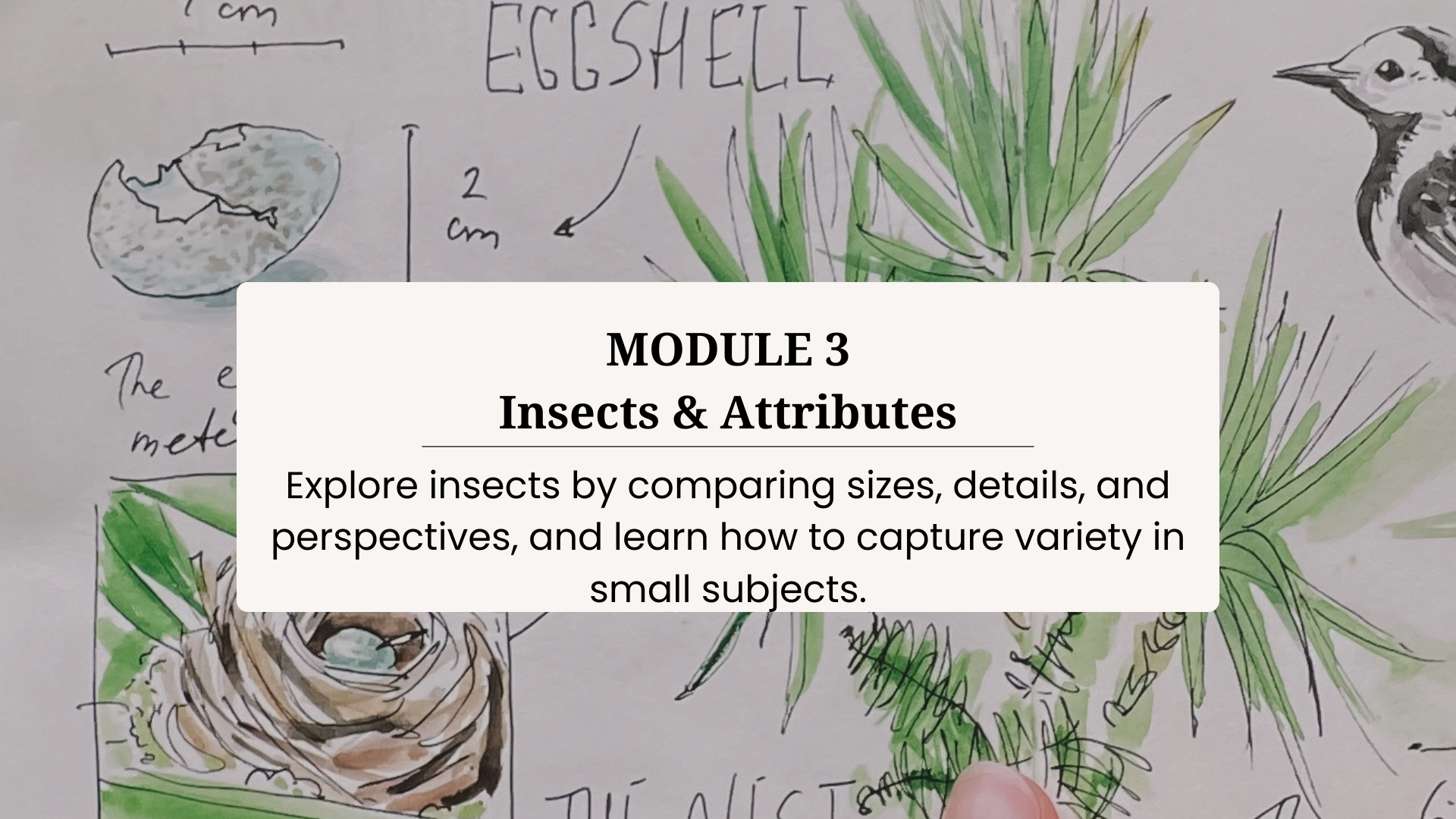 In this course, youâll learn how to turn what you see in nature into a personal, meaningful journal. Step by step, youâll combine simple sketches and notes to record your experiences in a way that feels natural and enjoyable.