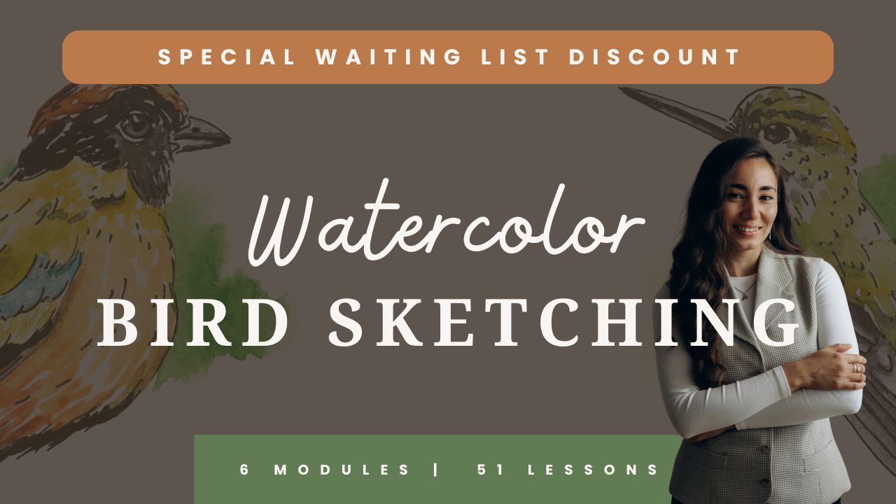 Start your journey in watercolor bird sketching today and get instant access to the course!